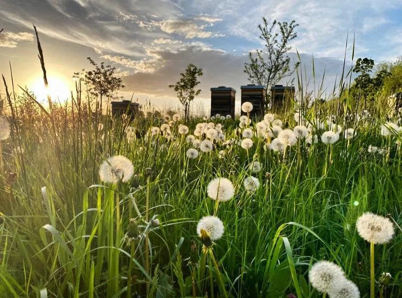 Der Standort unserer Bienenvölker ist umgeben von Streuobstwiesen, üppigen Blühflächen, Grünland, Feldern und Wildgehölzhecken. In unmittelbarer Nähe befinden sich Linden-, Roßkastanien- und Ahornbäume sowie das Biotopverbundsystem der Naturland Stiftung Saar und ein Natura 2000 Schutzgebiet.